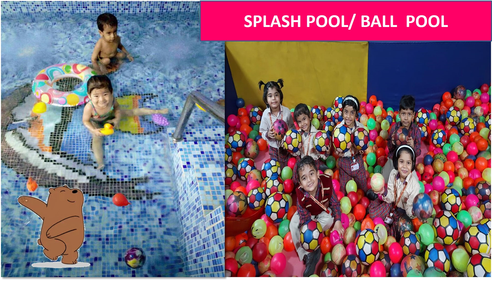 A splash pool has been constructed in the school premises to make summers enjoyable for our little ones. It is a state-of-the-art splash pool designed to match the average height of our students. It has in-built showers for simulating the ‘Indoor Monsoon Experience’. The Splash pool is also used as a Ball Pool during winters.