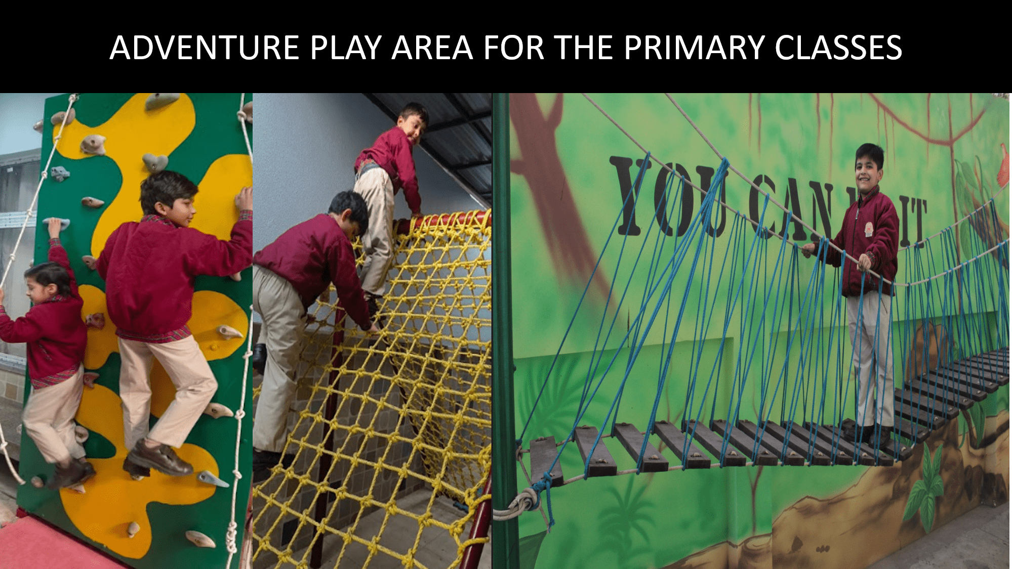 For the Primary sections, we have an adventure-based play area that challenges children and helps them grow physically and mentally. The play area features Burma Bridge, Commando Net, Rock Climbing, among other activities.